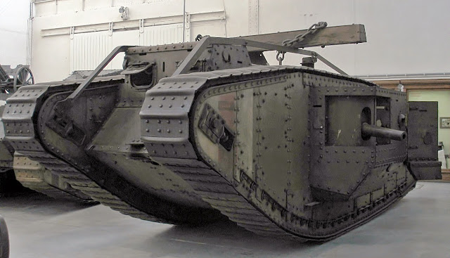 de um veículo motorizado denominado Mark I, armado com canhões e metralhadoras,